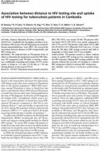 OBJECTIVE: Cambodia has the highest incidence of tuberculosis (TB) in Asia. Not all TB patients are tested for human immunodeficiency virus (HIV). We assessed the association between distance to HIV testing facility and HIV testing rates.