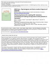 We explored the factors influencing voluntary counseling and testing (VCT) utilization among tuberculosis patients attending two referral hospitals in Cambodia. We conducted face-to-face interviews using a structured questionnaire. We compared HIV/AIDS knowledge, HIV testing attitudes, risks for exposure to HIV, and AIDS stigma between VCT users and non-users. Compared to VCT non-users, VCT users had significantly higher risks for HIV and were more likely to have used condoms. Regarding stigma, VCT non-users demonstrated significantly greater AIDS stigmatizing beliefs compared to VCT users. To increase VCT utilization among TB patients, we need effective strategies to reduce AIDS stigma among them. Moreover, initiation of routine HIV